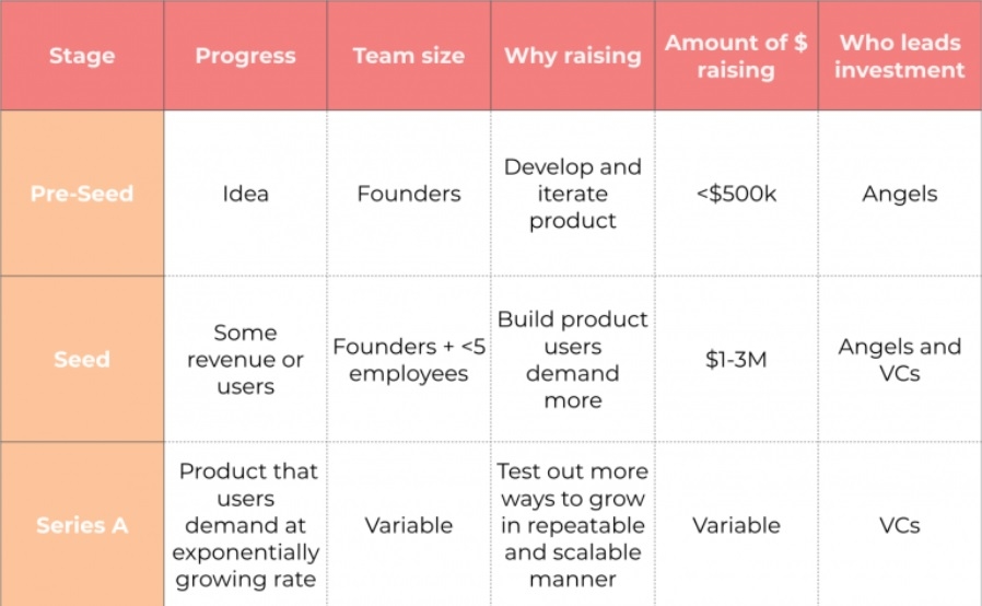 投资者的出手时机,Pre-seed,Seed,Series A。